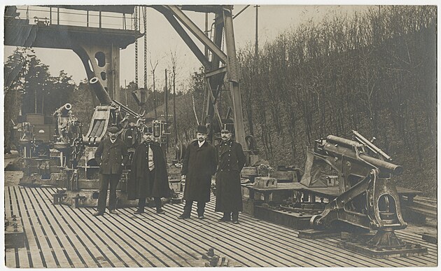 Přejímka těžkých pobřežních houfnic na bolevecké střelnici (1912).