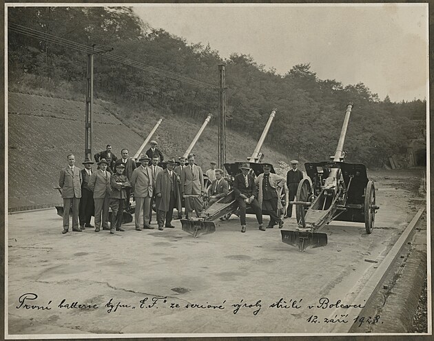 První baterie polních kanonů typu EF ze sériové výroby na bolevecké střelnici (1928)