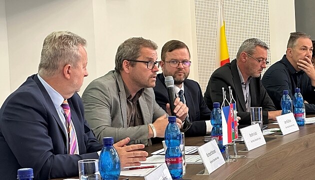 Zleva hejtman Richard Brabec, radní Radim Laibl, radní Jan Růžička, radní Vlastimil Skála a radní Jiří Valenta