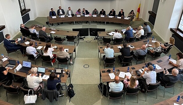 Hejtman Richard Brabec na jednání v Děčíně, vedle něj 1. náměstkyně Jindra Zalabáková