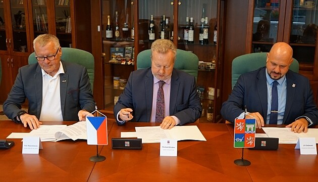 Zleva: Jiří Adámek, místostarosta Litoměřic, Richard Brabec, hejtman Ústeckého kraje a Petr Nedvědický, primátor města Ústí nad Labem