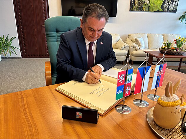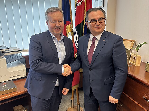 Hejtman Richard Brabec (vlevo) a srbský velvyslanec v Česku Berislav Vekić