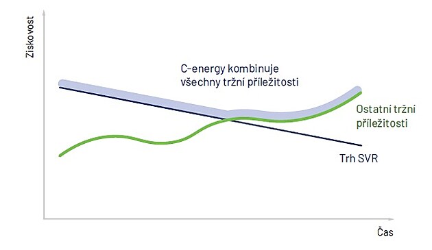 „Výnosy ze služeb poskytování výkonové flexibility na trhu služeb výkonové rovnováhy se postupem času snižují. V rámci agregace a obchodu proto C-energy pro své klienty získává také výnosy z využití zařízení na trzích s elektřinou prostřednictvím obchodní flexibility. Takový mix výnosů zajišťuje maximální výtěžnost a výkon energetických zařízení, což se přímo odráží ve zvýšení zisku našich partnerů,“ vysvětluje Josef Havlík, ředitel strategie C-energy.
